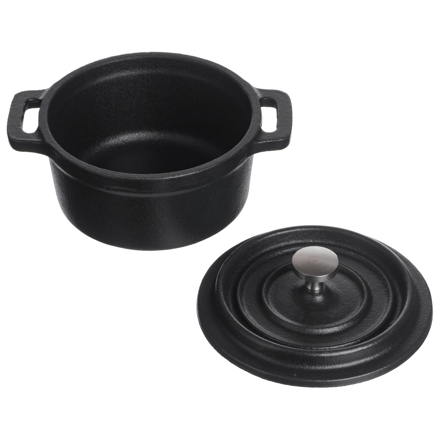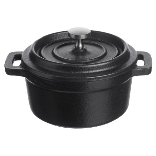 Кастрюля для запекания и подачи 250 мл. d=100 мм. h=70 мм. с крышкой, черная, чугун /1/