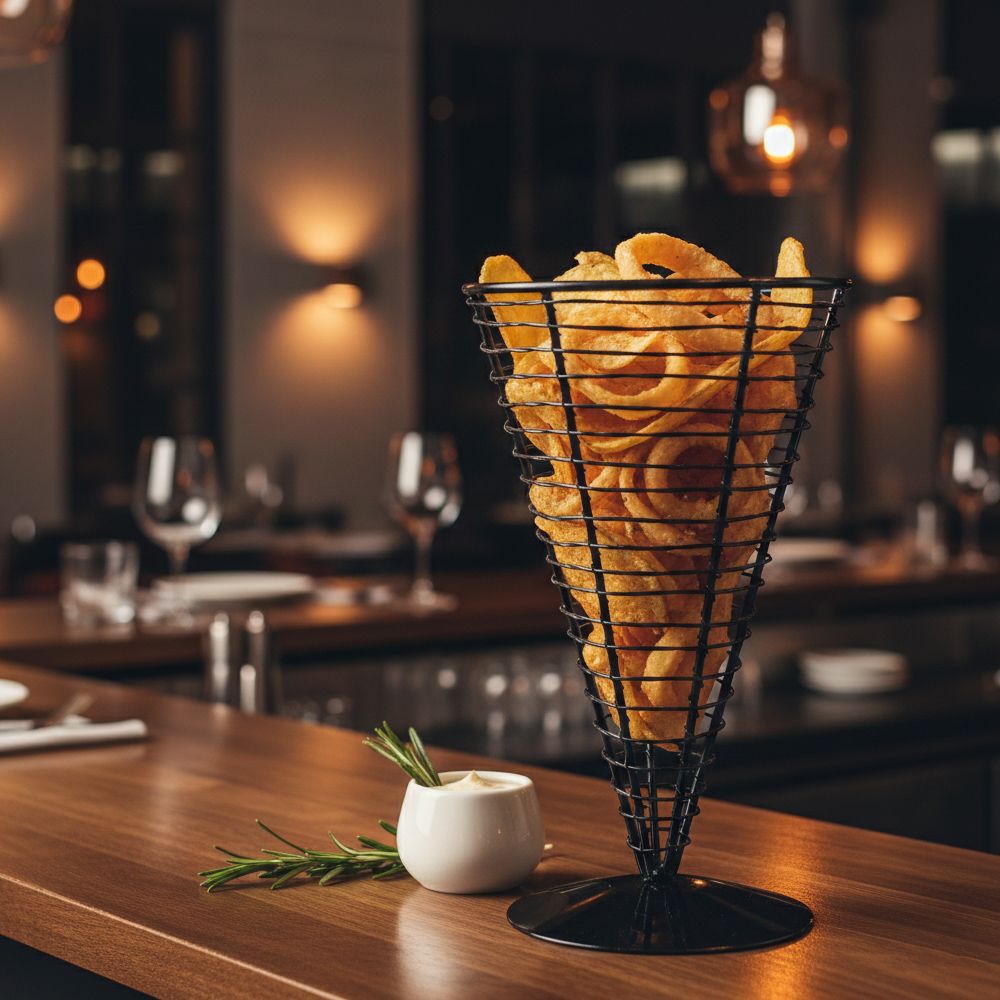 Корзинка для подачи коническая d=130 мм. h=225 мм. 900 мл. кованное железо, черная MGsteel /1/24/