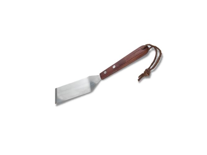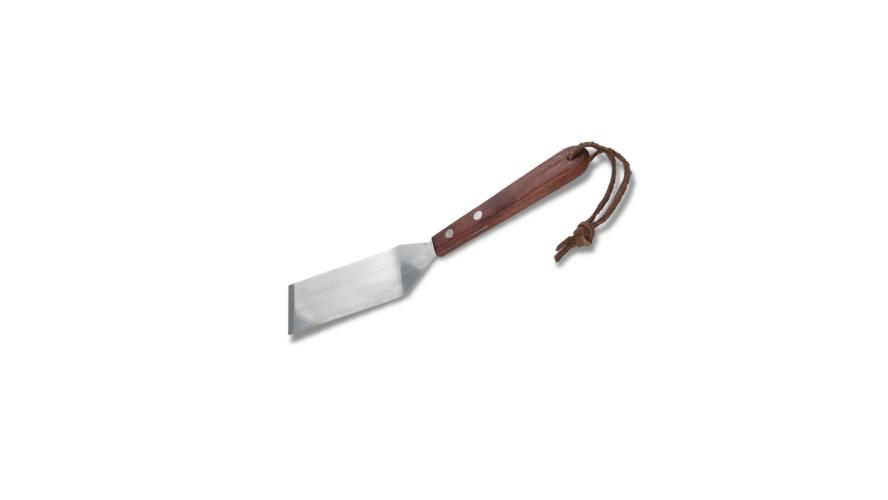 Рабочая часть металлической лопатки довольно жесткая, поэтому не подходит к посуде с антипригарным покрытием.