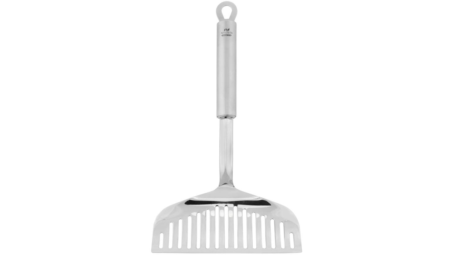 Металлическая лопатка довольно жесткая, поэтому не подходит к посуде с антипригарным покрытием.