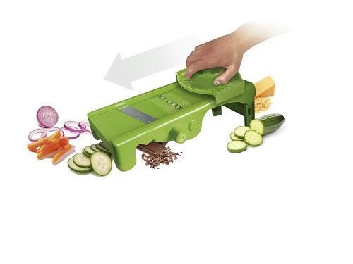 string(225) "32,8*16,4*9 см. 3 лезвия в комплекте, 8 видов нарезки, толщина от 1 до 9 мм, 6/9 кусков