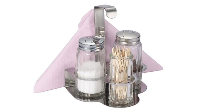 string(262) "Набор предметов для специй с салфетницей, в который входит солонка и перечница + стаканчик для зубочисток.