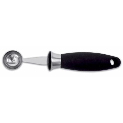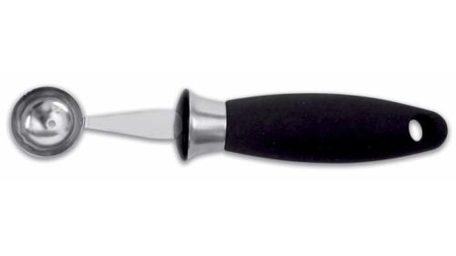 Фактически - это ложка сферической формы с заостренными краями из нержавеющей стали и практичной пластиковой ручкой.