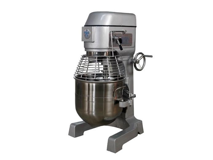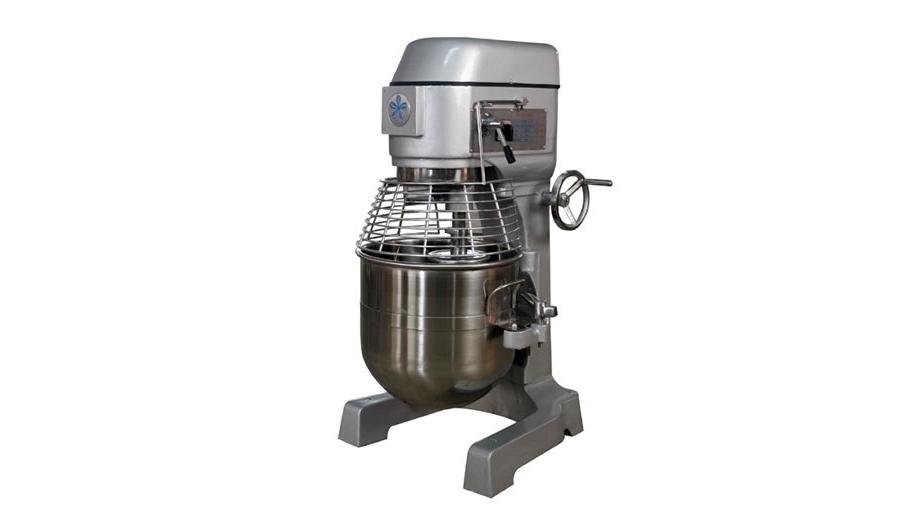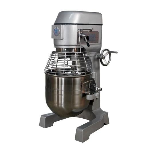 3 скорости (65/110/300 об/мин), съемная 40 л дежа из нерж.стали, крюк, плоский битер, проволочный венчик.