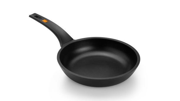 Ручка произведена из термостойкого материала, имеет эргономичную форму, что позволяет легко штабелировать сковородки при хранении