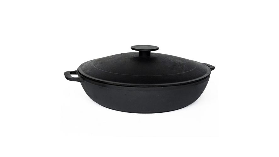 Сковорода d=40 см. h=9,8 см. 10,5 л. чугун глубокая с крышкой с 2 ручками /1/