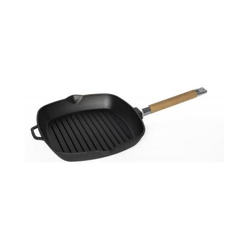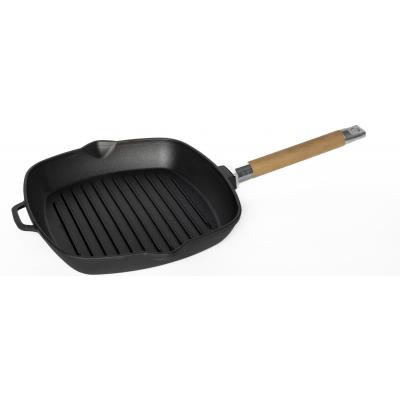 Сковорода-гриль 26*26 см. h=4,5 см. 1,7 л. чугун. рифлен. со съемн дерев. ручкой /1/8/