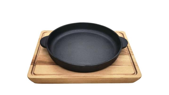 Сковорода порц. d=16 см. h=2,5 см. чугун. с 2 ручками на дерев. подставке /1/12/