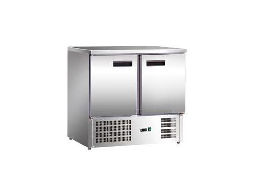 Холодильник-рабочий стол "мини", экономичная версия, +2...+8оС, 260 л, допустимая загрузка 50 кг, 2 дверцы, 2 полки-решетки GN 1/1 с направляющими, столешница без борта, материал корпуса снаружи - нерж.сталь 304/430, внутри - алюминий