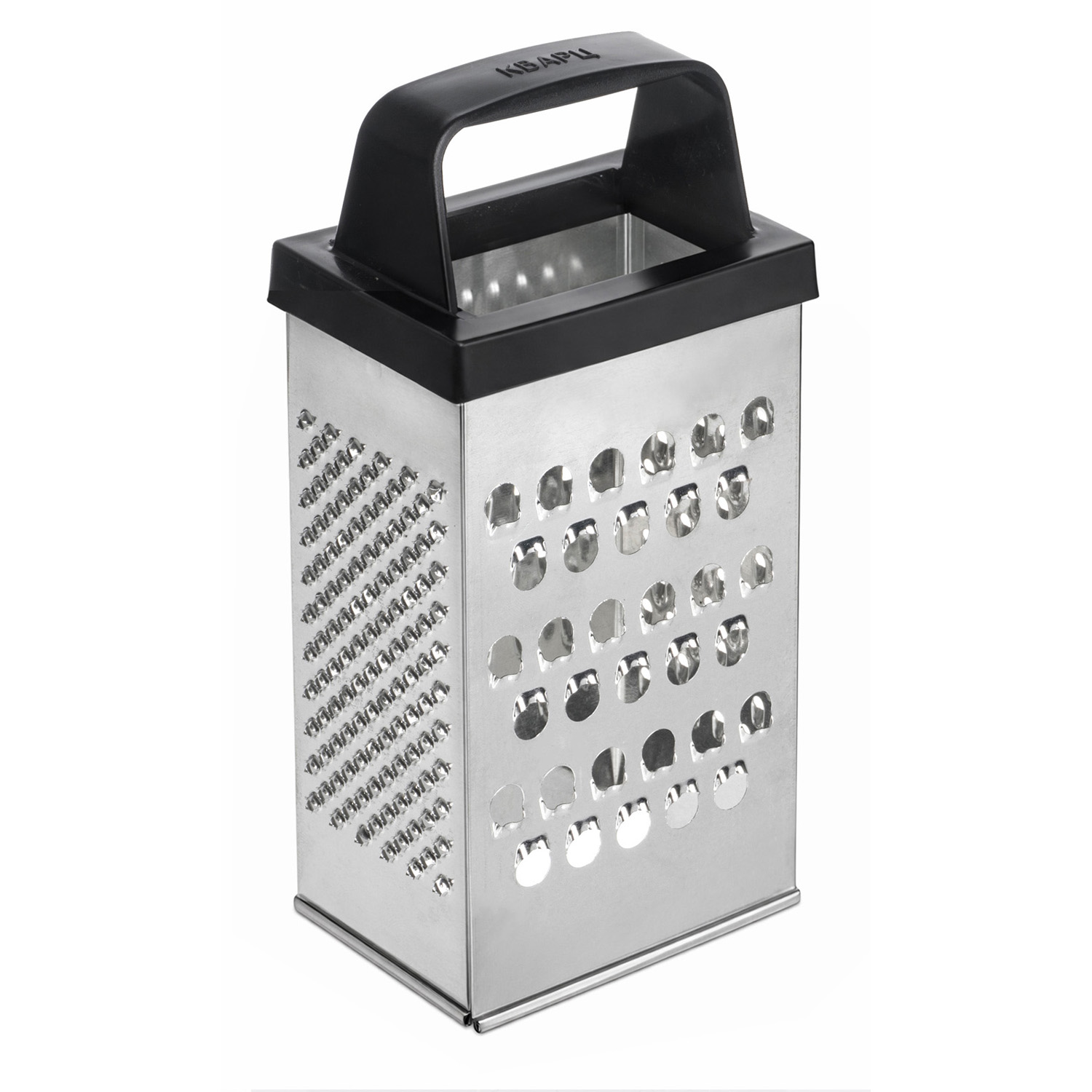 Четырехгранная терка из белой жести оснащена удобной ручкой.