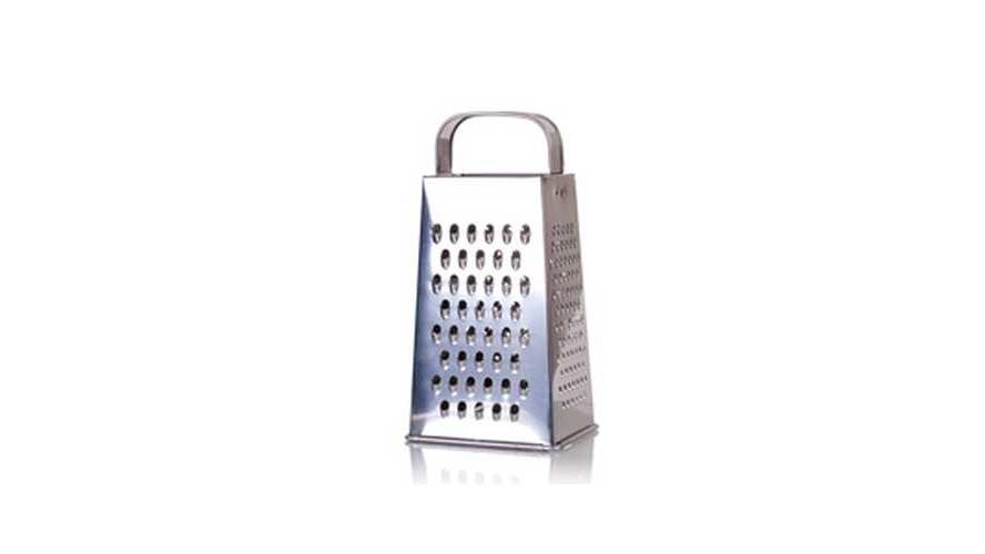 Четырехгранная терка из белой жести оснащена удобной ручкой.