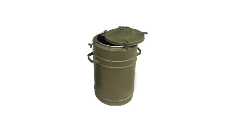Термос армейский состоит из крашеного металлического контейнера корпуса, вынимающейся нержавеющей колбы для удобства очистки и крышки притягиваемых болтами с барашками.