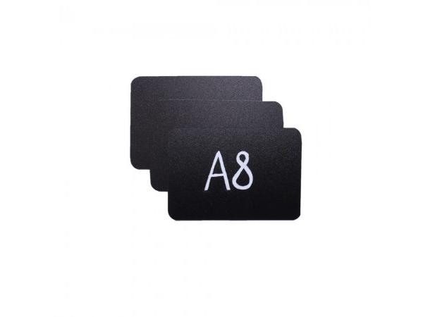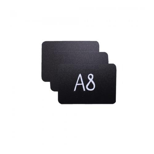 Меловой ценник с двусторонней шероховатостью черный формат А8 изготовлен из полипропилена 0.5 мм. (скругленные углы)