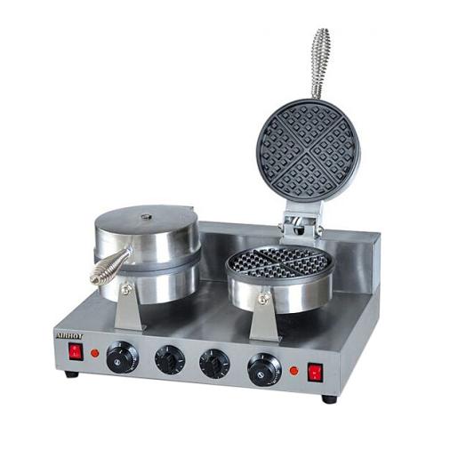 Вафельница используется на предприятиях общественного питания и торговли для выпекания бельгийских вафель в форме сегментов 1/4 круга. Модель оснащена терморегулятором и электронным таймером. Корпус выполнен из нержавеющей стали, жарочная поверхность - из чугуна с антипригарным покрытием.