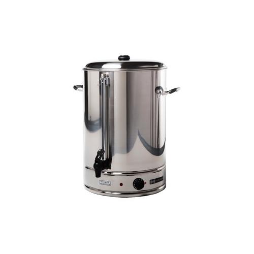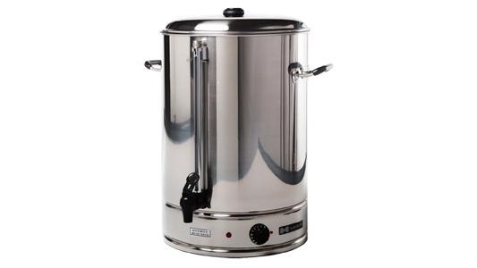 Водонагреватель используется на предприятиях общественного питания и торговли для нагрева воды и последующего поддержания ее заданной температуры. Модель оснащена закрытым нагревательным элементом, регулируемым термостатом, индикатором нагрева и ручками. Корпус выполнен из нержавеющей стали.