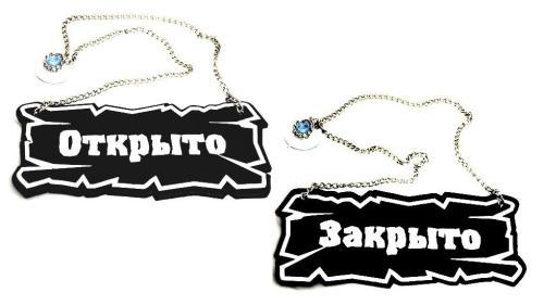 Вывеска "Открыто/закрыто" 25*10 см. на цепочке кожа темно-корич. /1/ Под заказ